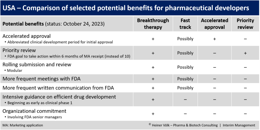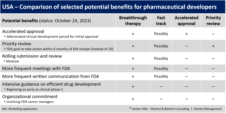 USA - Comparison of selected potential benefits for pharmaceutical developers